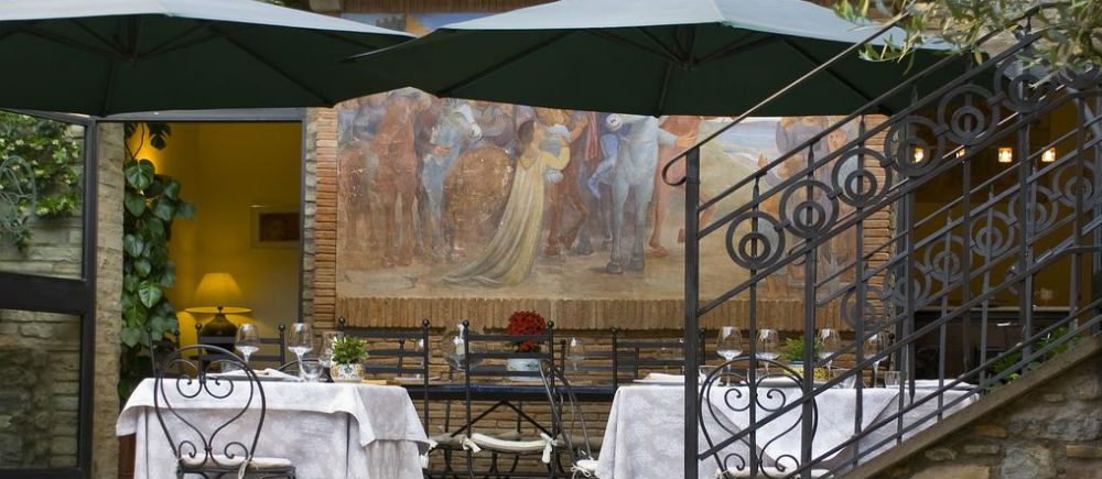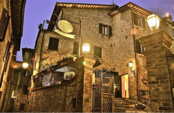 “La Locanda del Capitano is a tiny inn romantically tucked in the historic center of a medieval, picture-perfect walled village perched on a hilltop overlooking a serene, gentle, Umbrian landscape. The hotel is at heart a restaurant, which has quickly gained well-deserved publicity for the outstanding quality of the kitchen but, luckily for guests, there are also a few bedrooms. The guestrooms are small, but sweetly decorated in an appropriately simple, country style. All have pretty wrought-iron headboards with floral paintings hand-done by a local woman. The choice guestrooms are the two with a small terrace tucked up amongst the ancient tiled rooftops. La Locanda is the creation of your charming hosts, Carmen and Giancarlo Polito, who decided at the tender ages of 26 and 27 to begin their life together in the countryside and discovered in a newspaper ad the perfect site for their inn, a centuries-old stone house in the idyllic town of Montone. As soon as they saw the house, their hearts were won. Carmen and Giancarlo are wonderful with their guests, and even organize tours for a minimum of seven people into the countryside for truffle hunting during the season.”