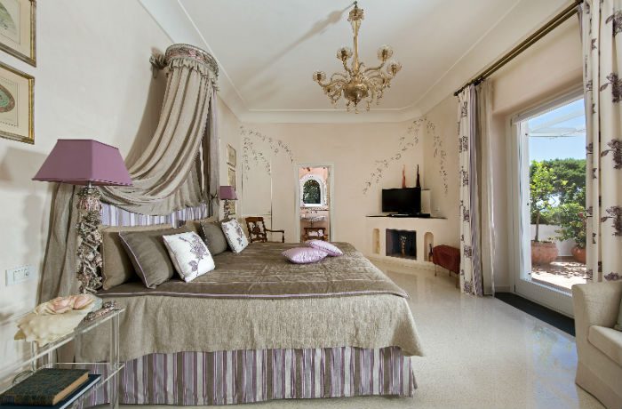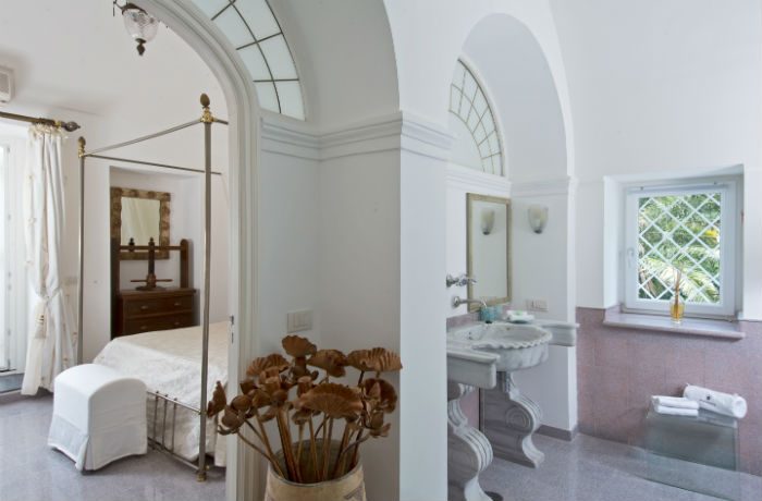 The villa, an area of about 400 sq. meters, consists of a ground floor comprised of a large living room, dining room, kitchen and service area, while on the first floor there are six bedrooms, all en-suite and each with different names that evoke an atmosphere of the last century. The property was modernised around 2002 by the then owner because it was in very poor condition to make it a residence for personal use and for friends and international guests visiting Capri.