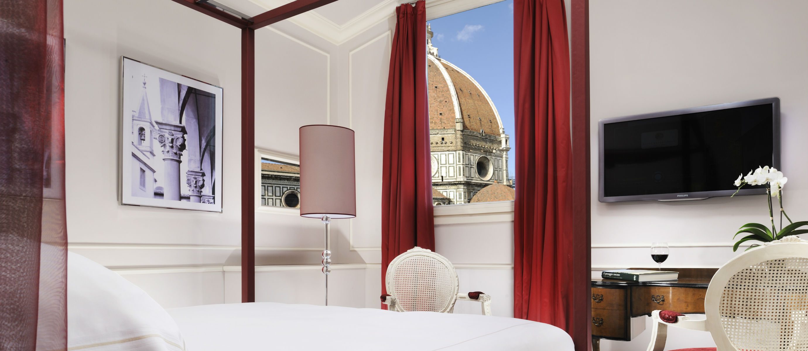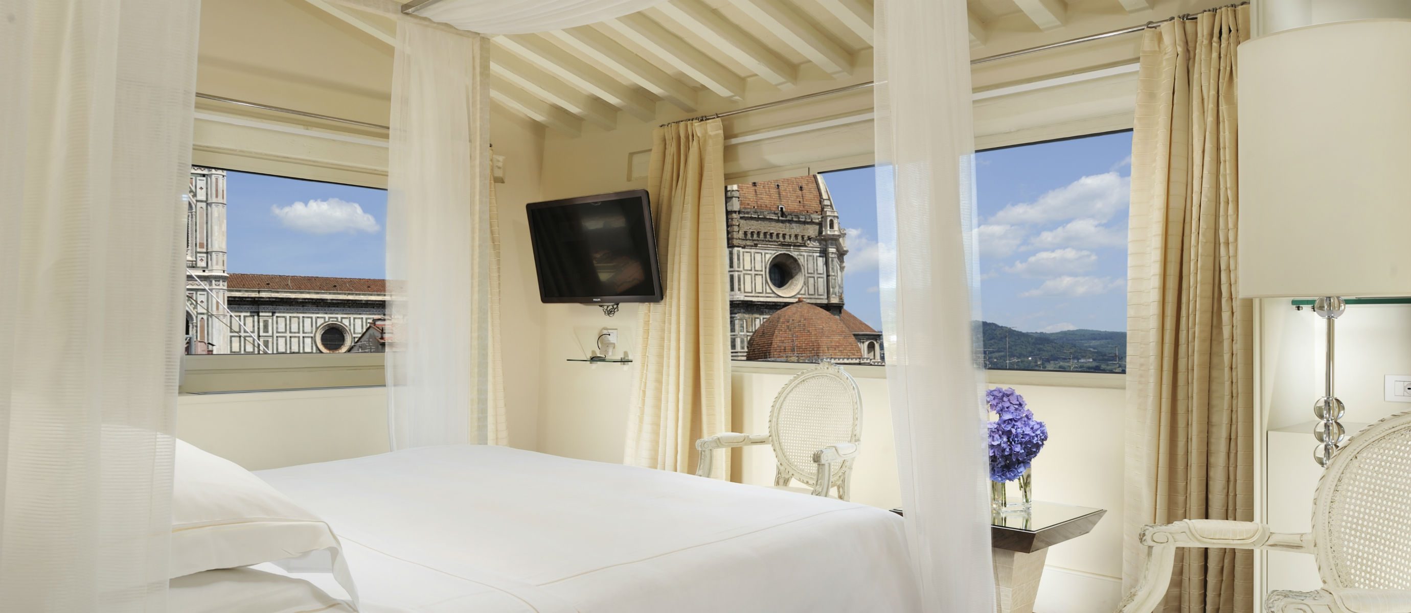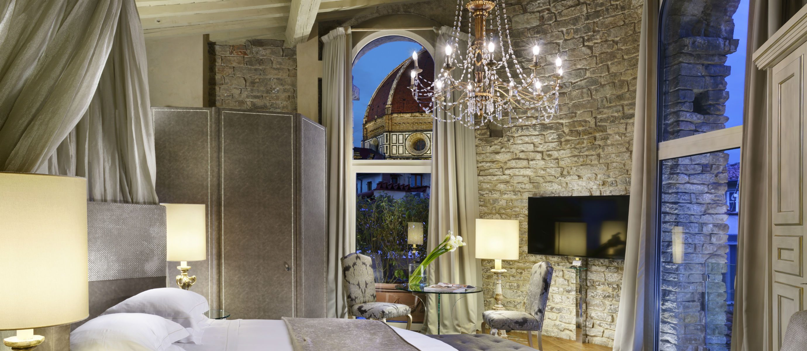 A Suite in Florence with a view of the Duomo is an exclusive opportunity to experience art in all its beauty. Fully refurbished by Architect Benelli, this suite overlooks the celebrated Brunelleschi’s Cupola and the Giotto Tower from an incredibly central location.