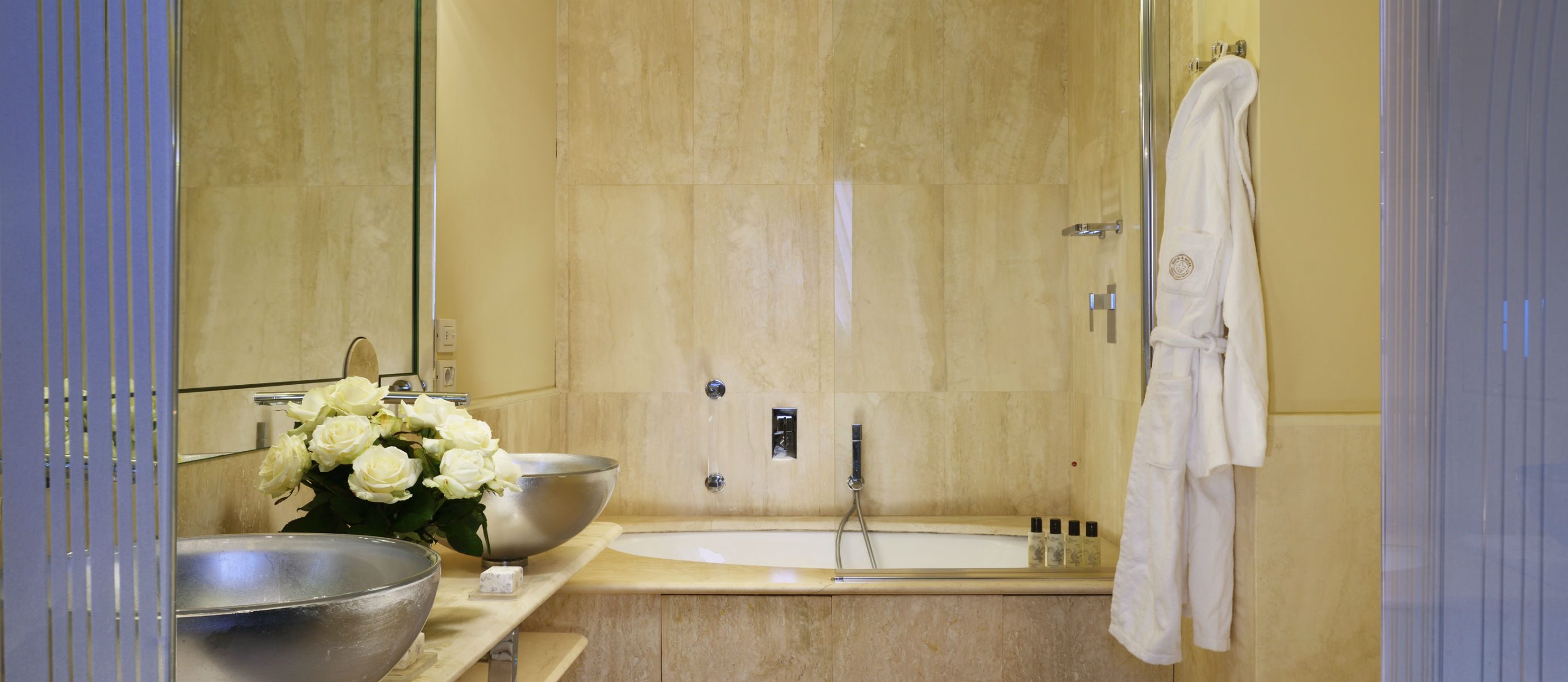 Satellite 42″ LCD TV with 60 digital TV channels and Sky channel, direct dialling, air conditioning and heating remote control, safe deposit box are at your disposal. The wide full marble bathroom is equipped with a whirpool tub, hairdryer, magnifying mirror, fluffy terry towels, slippers and fine bathrobes. Courtesy kit from Dr Vranjes with ‘soft touch’ bottles.