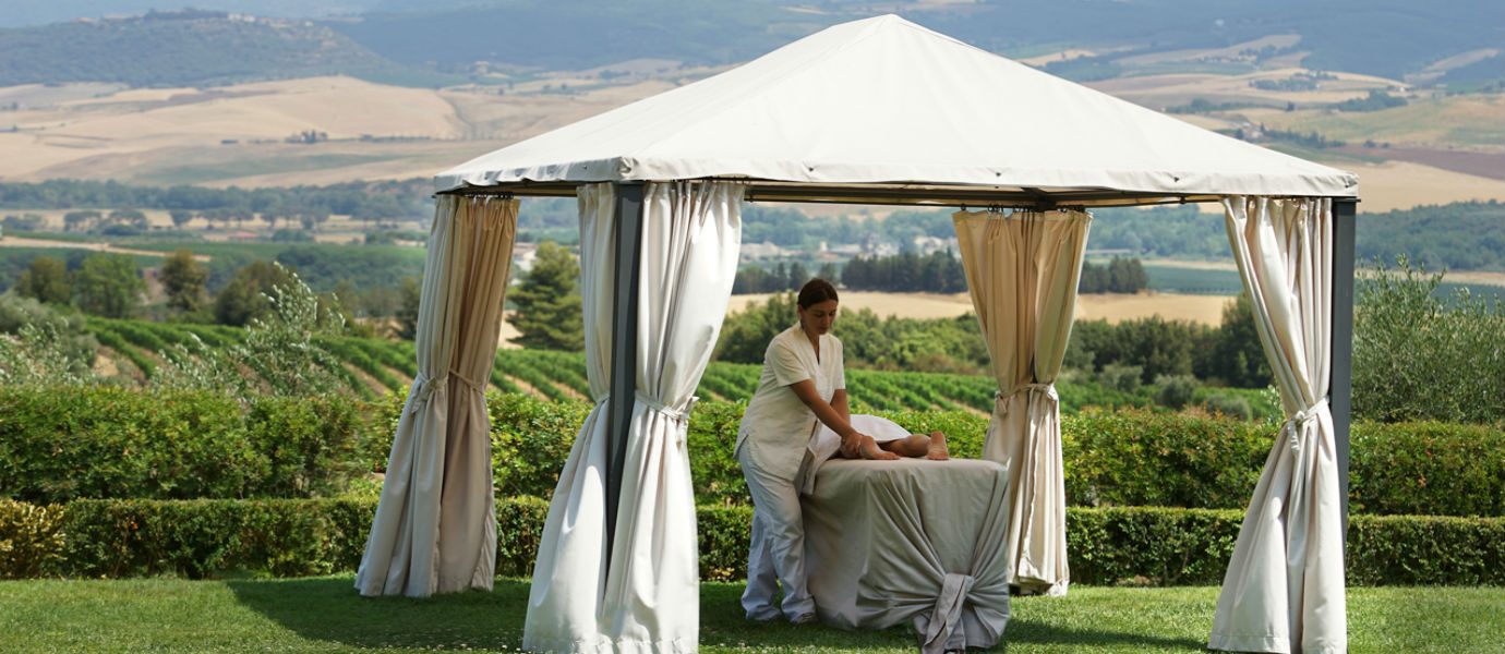 Each of the ample 2 rooms and 12 junior suites and suites and Junior suite is distinctly designed and original, embellished and decorated by hand, with premium fabrics and exclusive accessories which underline the inherent elegance of Il Borgo. Each detail was looked after by Federico Forquet, one of the most renowned interior designers of all Italy. Guests may indulge in exclusive vino-therapy products, derived from our Sangiovese Brunello and idealized for the pleasure and well being of the body.