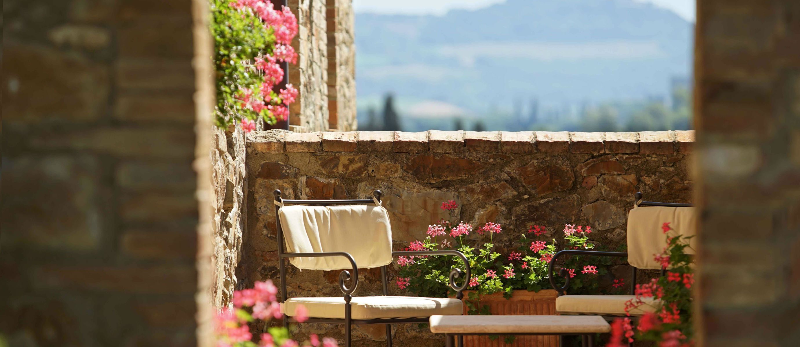 This ancient stone hamlet rose in the 1700s under the nurturing shade and protective walls and towers of Castello di Poggio alle Mura and served as the dwelling of farmers who toiled for the noble landowners. Today it has been re-styled into the luxurious rooms and suites of this crown jewel of Tuscan hospitality.