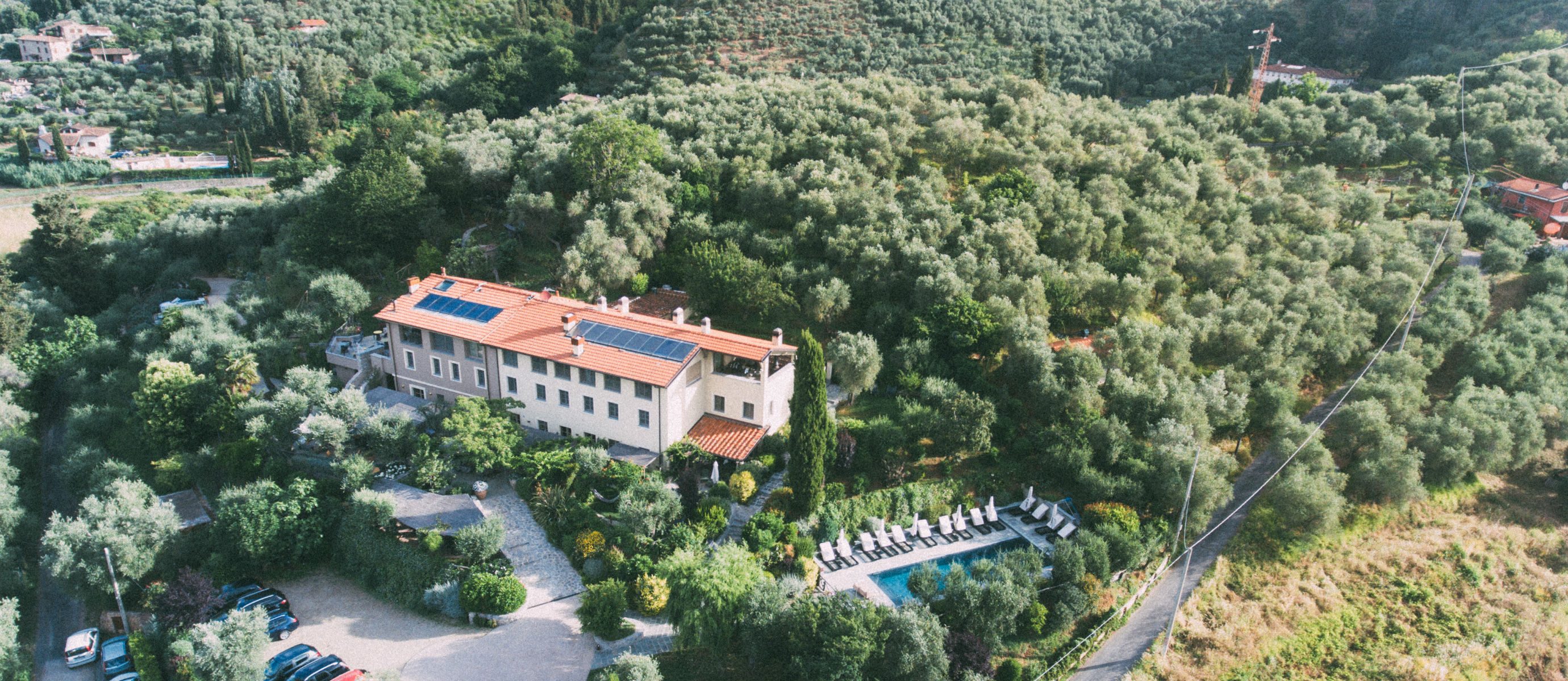 From the restoration of an ancient farmhouse, a contemporary guest-house was born. Minutes from the sweet sea breeze of the Tuscan coast, Locanda al Colle is set on a hill overlooking Camaiore in the province of Versilia. Ancient trees and olive groves mark the path to the guesthouse, where aromatic and ornamental plants ease guests into a state of tranquility. The property’s hilltop position offers an enchanting view, gently leading all eyes back down towards the sea.