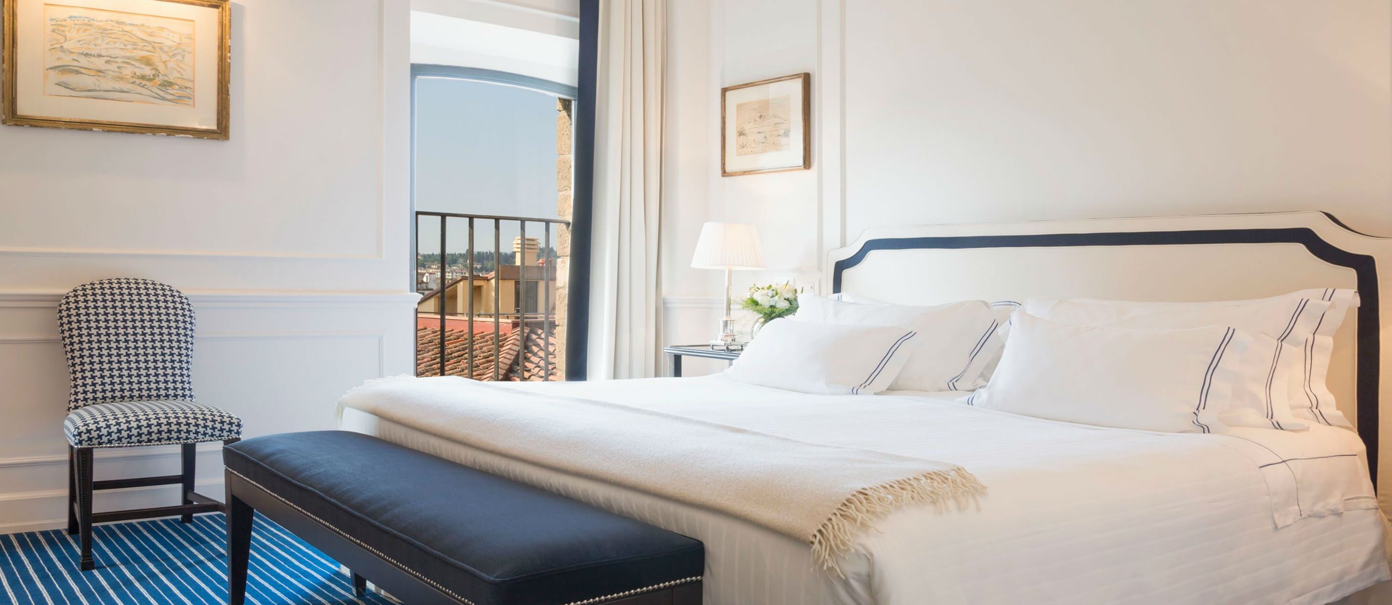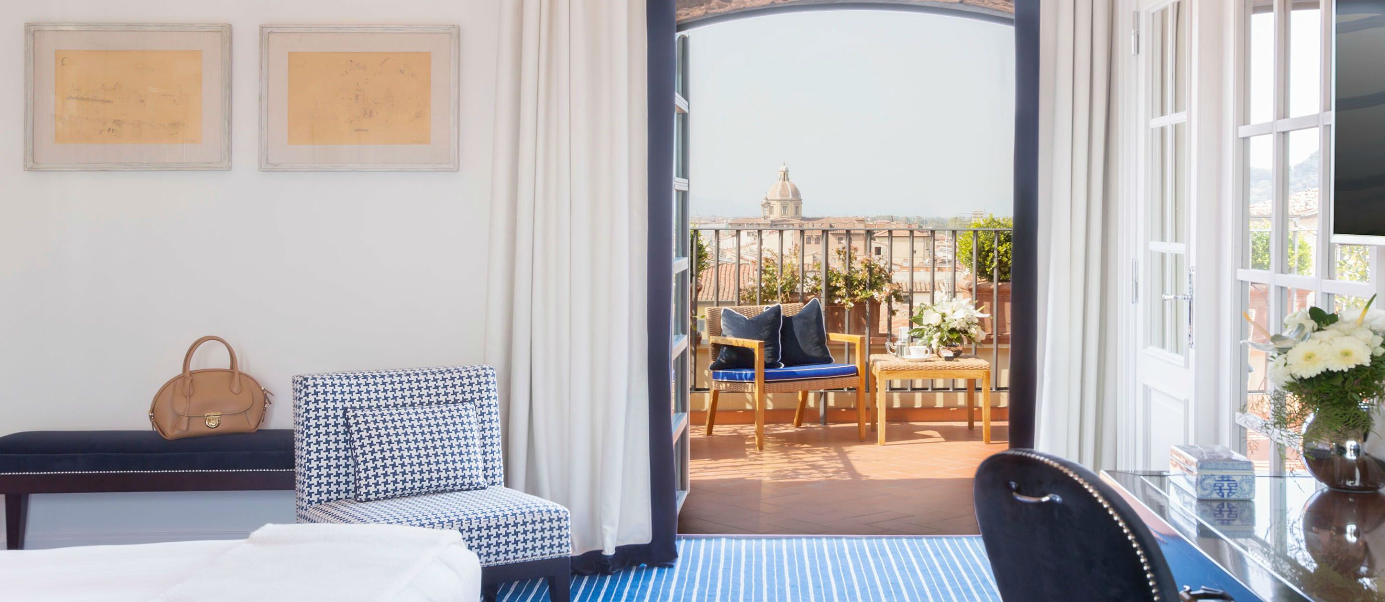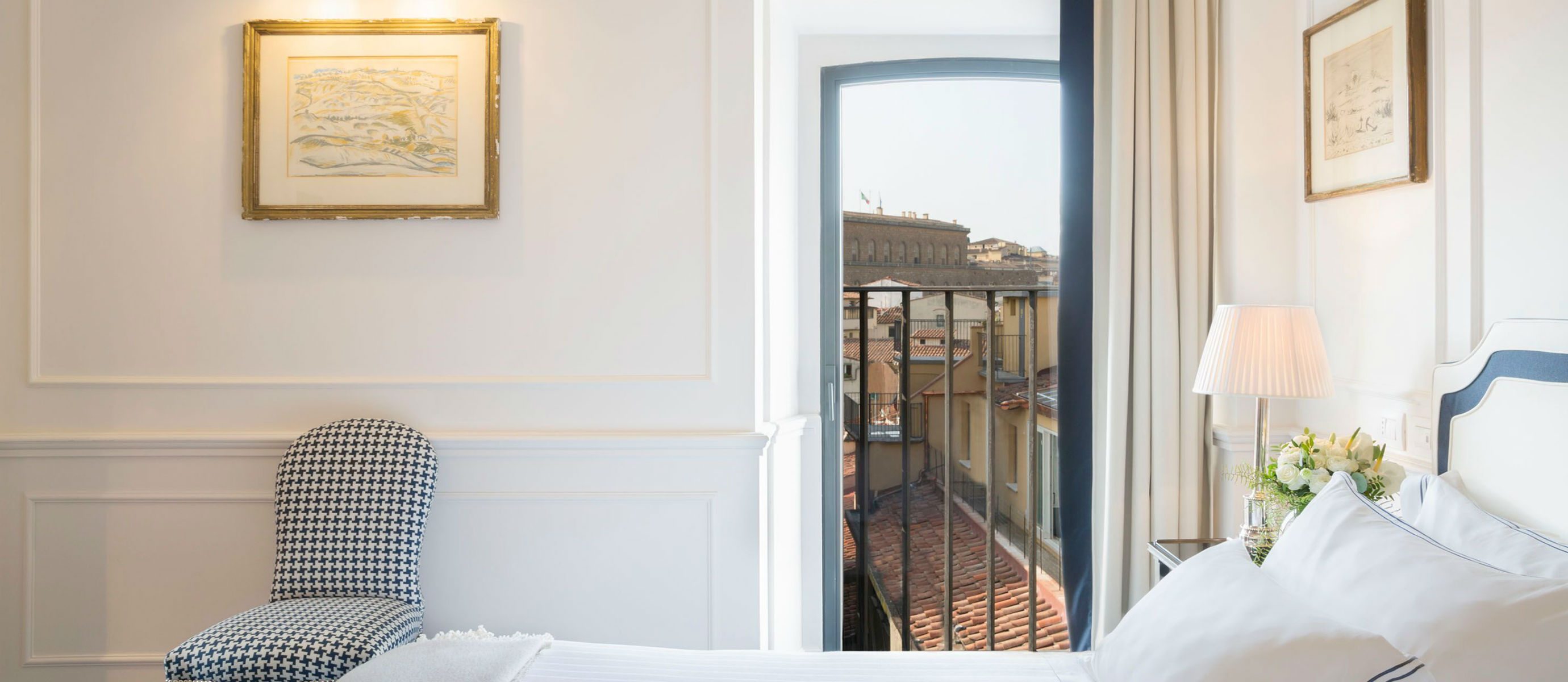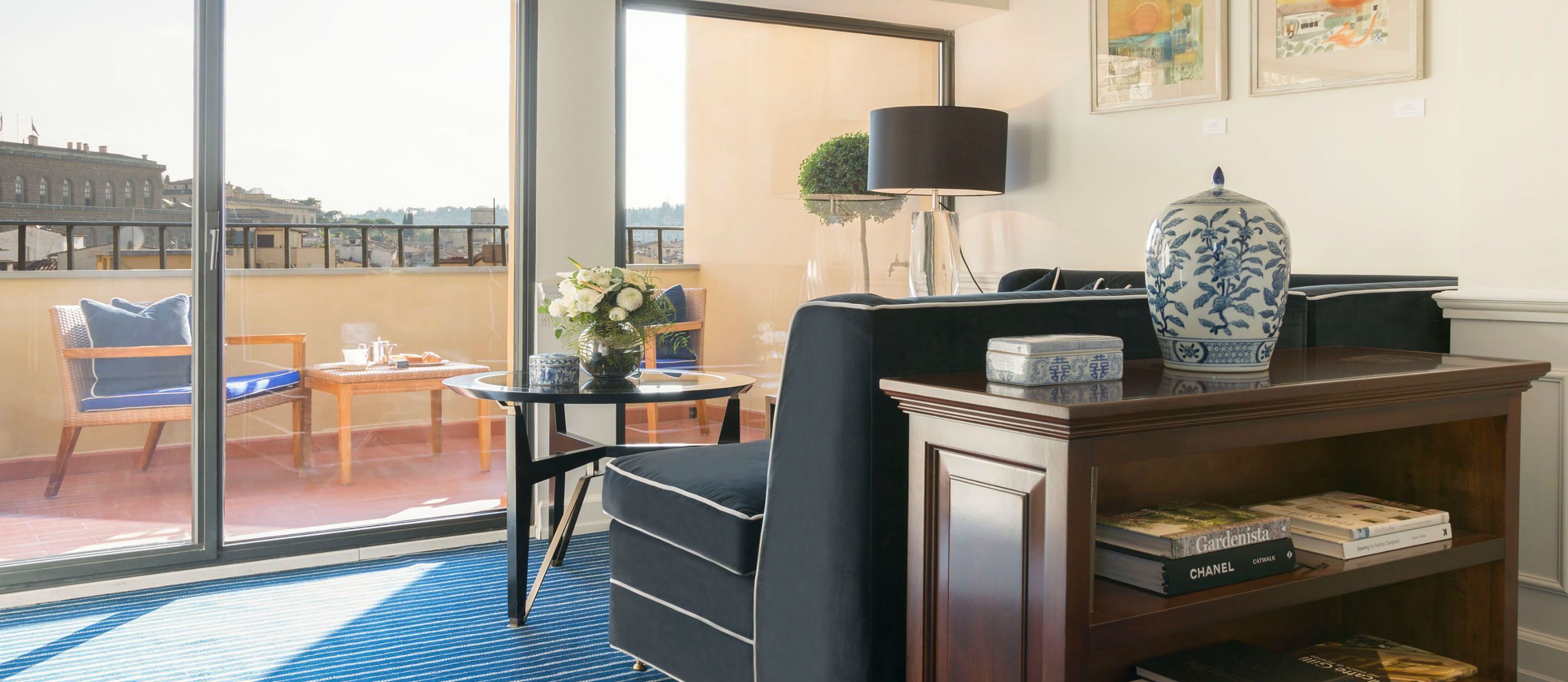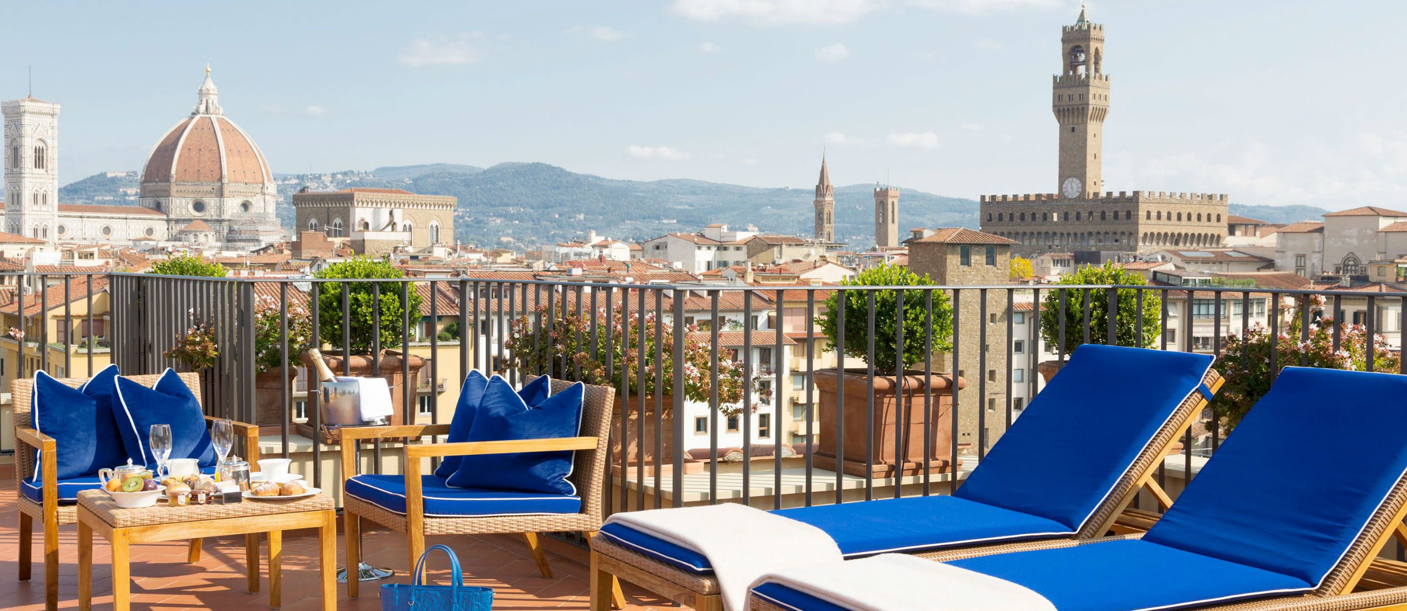 Enjoy a breathtaking, 360-degree view of Florence from the new Rooftop Terrace Suite. Observe the landscape from Palazzo Pitti to the Santa Trinita Bridge, swim in the reflections of our city on the Arno and Ponte Vecchio, and get lost in the splendor of Brunelleschi’s Dome of the Cathedral of Santa Maria del Fiore and Santa Maria Novella. This is more than what you would expect from the private terrace of the new Rooftop Terrace Suite at Hotel Lungarno.