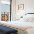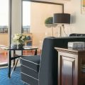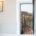 The suite consists of two bedrooms, each with a private bathroom, divided by a common living room featuring a balcony overlooking Palazzo Pitti and the Florentine Oltrarno. On the 8th floor, you will find a large and luminous space dedicated to the works of the painter of Italian realism, Orfeo Tamburi.