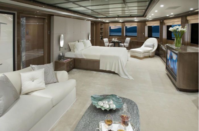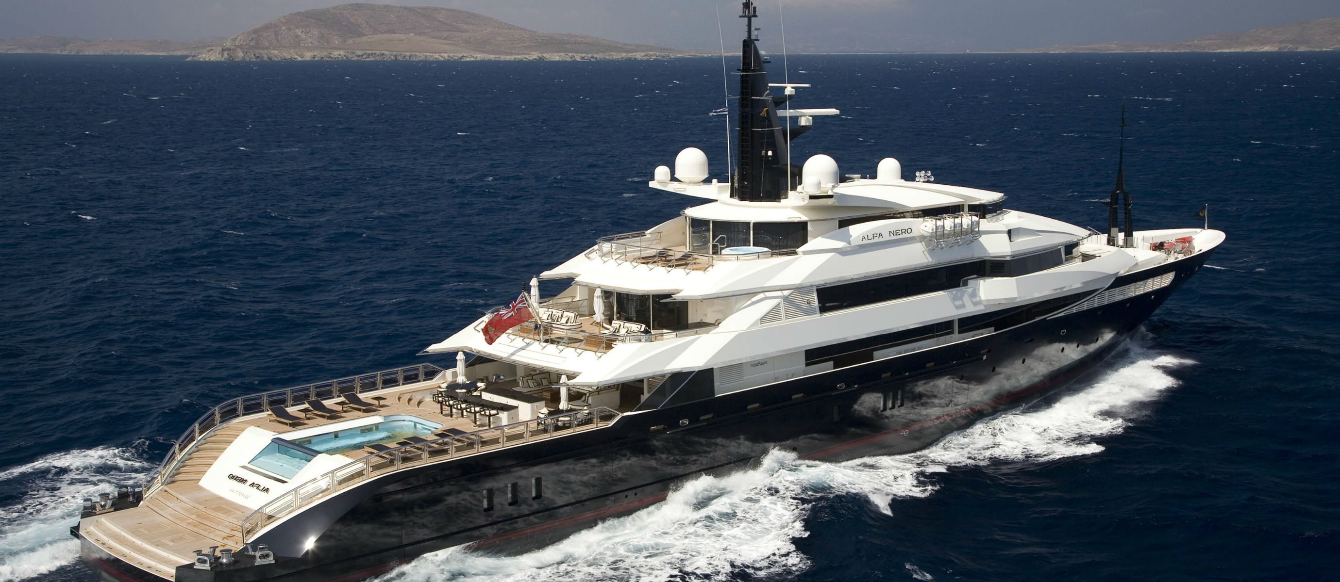 Built with Steel hull and Aluminium superstructure. , she features an ultra-modern stabilization system to reduce roll motion effect and ensure the ultimate comfort throughout your charter vacation. Alfa Nero is built to comply to MCA and Lloyd’s Register standards. With a cruising speed of 17 knots, a maximum speed of 20 knots and a range of 6,000nm from her 294,000litre fuel tanks, she is the perfect combination of performance and luxury.