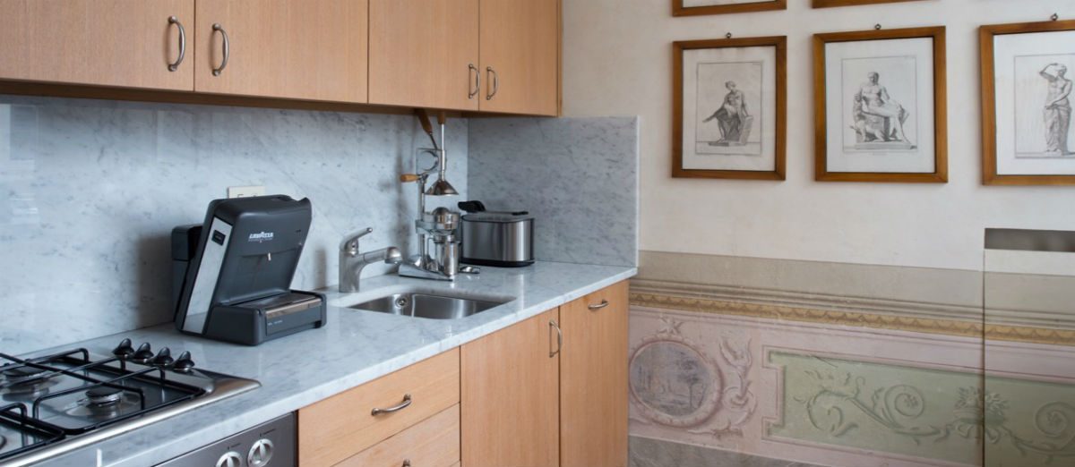 The apartment is located on the first floor of the Palazzo, with an elevator. Inside guests will find some original frescos and comfortable common spaces.