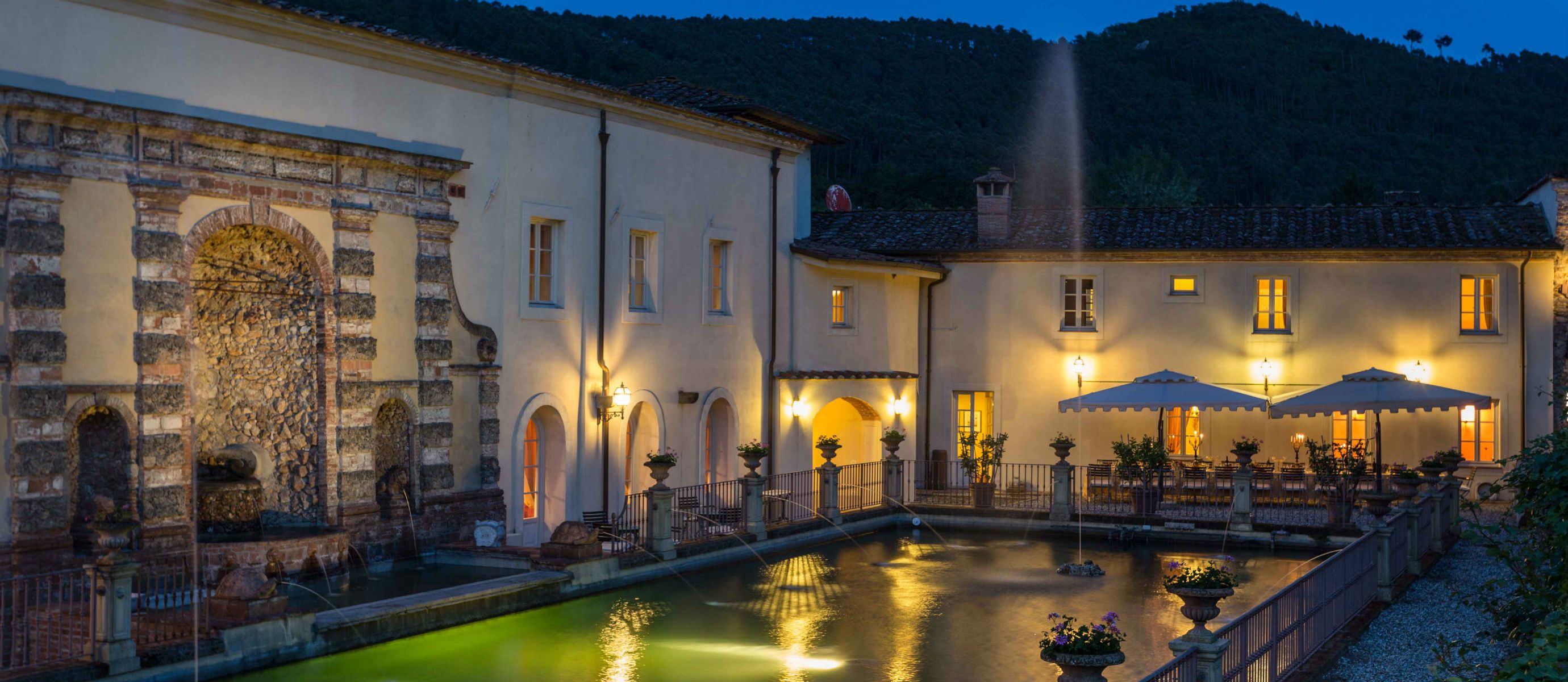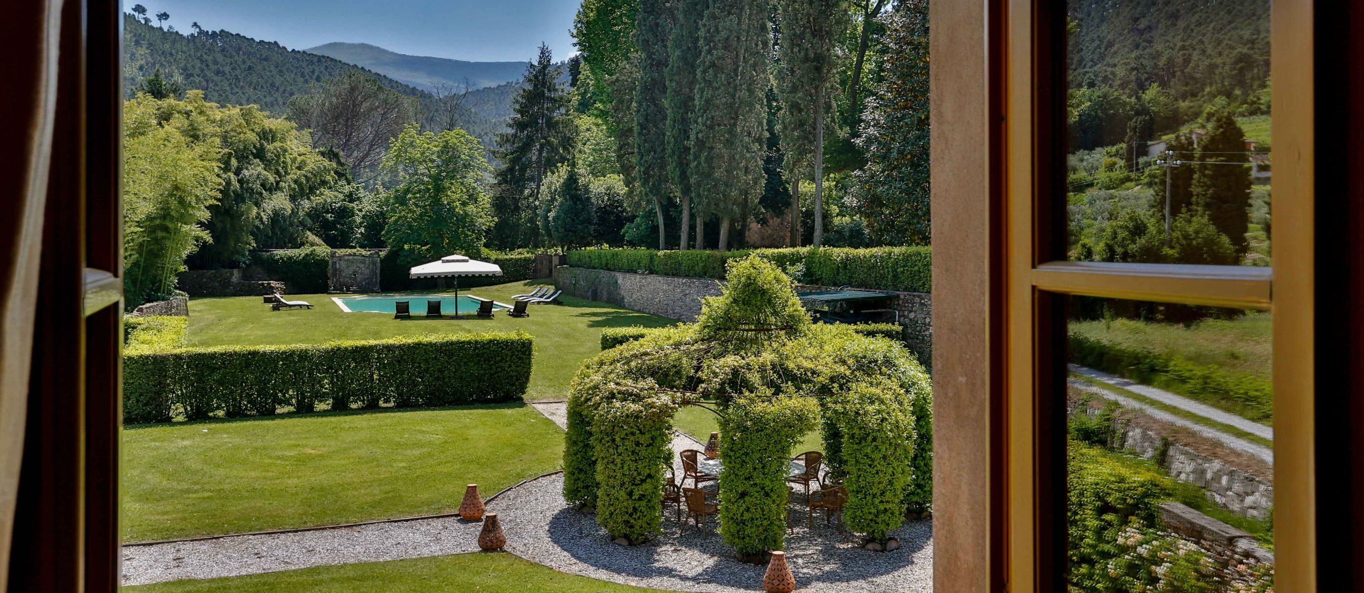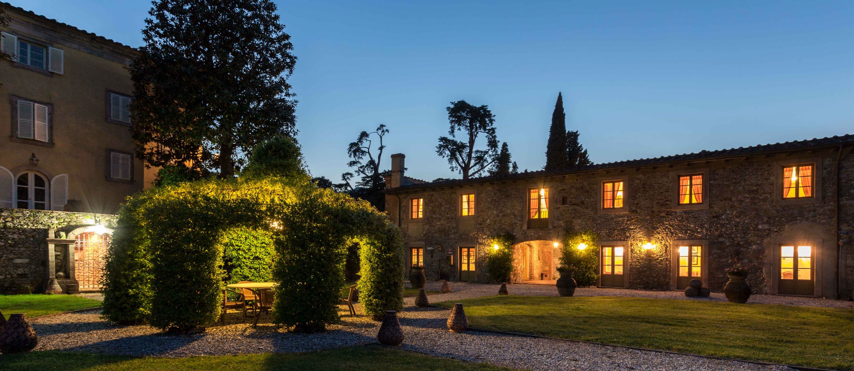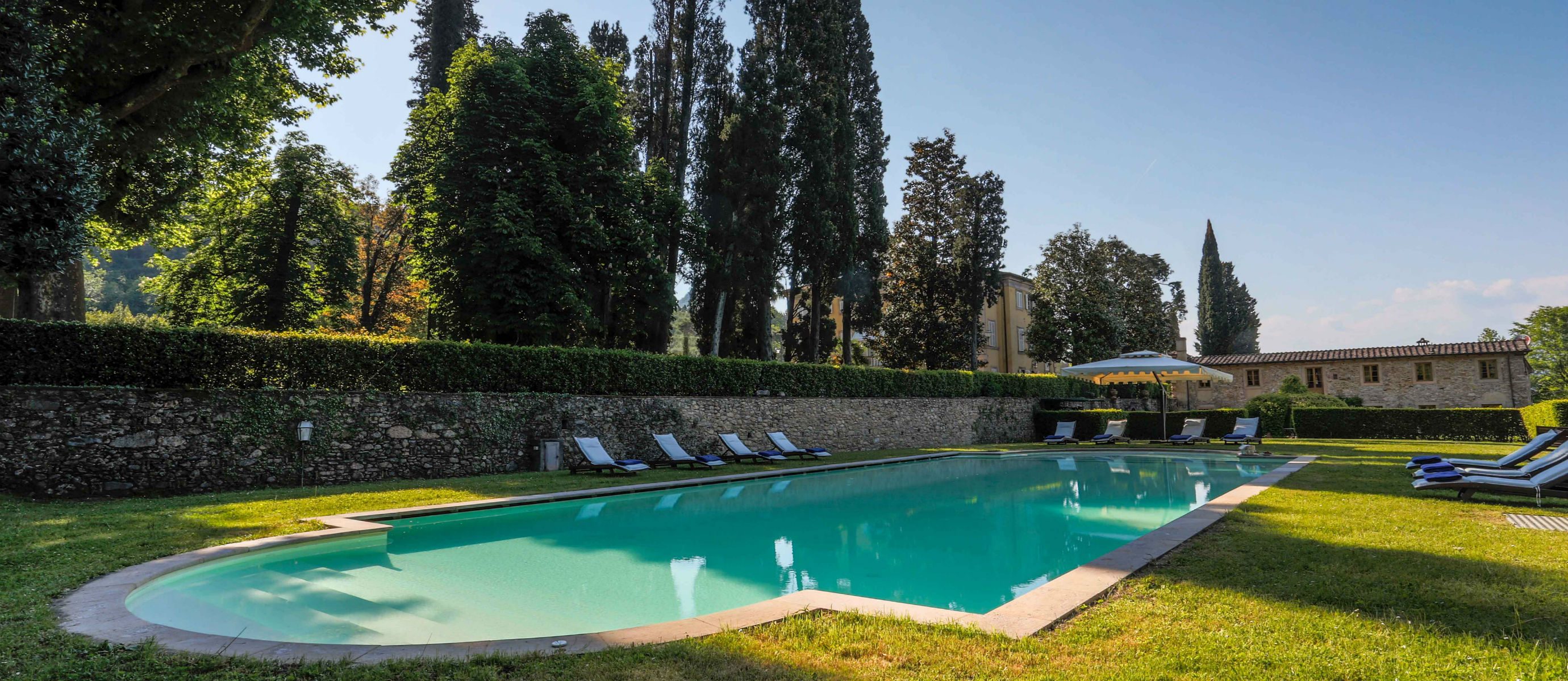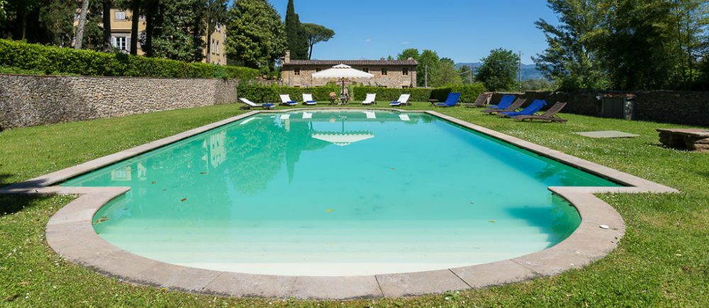Centuries ago Count Bernardini created a haven in the hills that surround the ancient walled city of Lucca. Today Lucca Hamlet is an elegant and exclusive Tuscan retreat immersed in a splendid parkland of ornamental ponds and antique fountains, time-forgotten courtyards, and lemon-scented Italian gardens. The 12 individually styled bedrooms, accommodating up to 24 guests, are a reflection of gracious living blended discreetly with the typical Tuscan hamlet style of wood-beamed ceilings, terracotta floors, and warm, welcoming colours. The reception rooms include a wine library with a private collection of Tuscan wines, a card, and billiard room, a domed music room with a log fireplace, a grand banquet room, a large Tuscan kitchen, several comfortable lounges as well as a workout room. With original features and picturesque views over hills and olive groves, Lucca Hamlet is a home of beauty, tranquility, and charm… a perfect place for the gathering of family and friends where days are timeless and memorable.