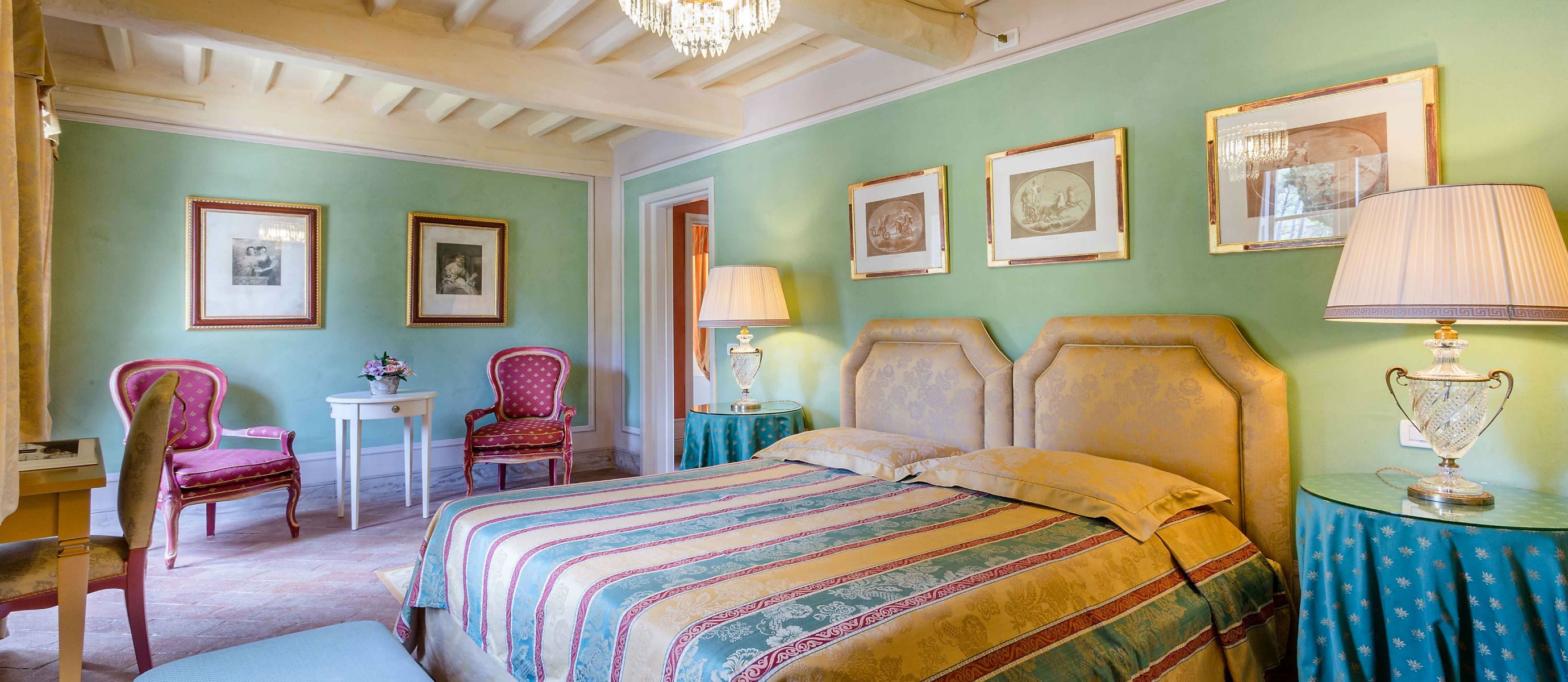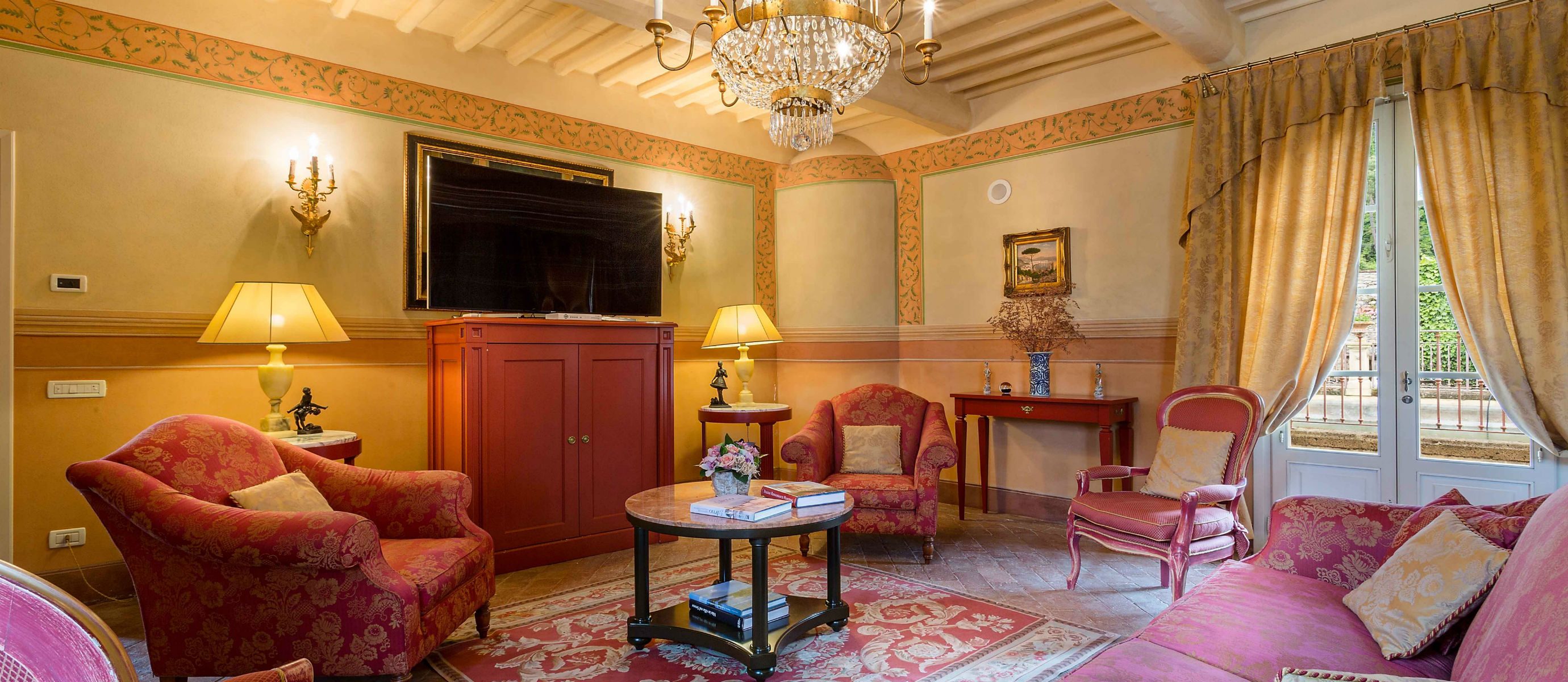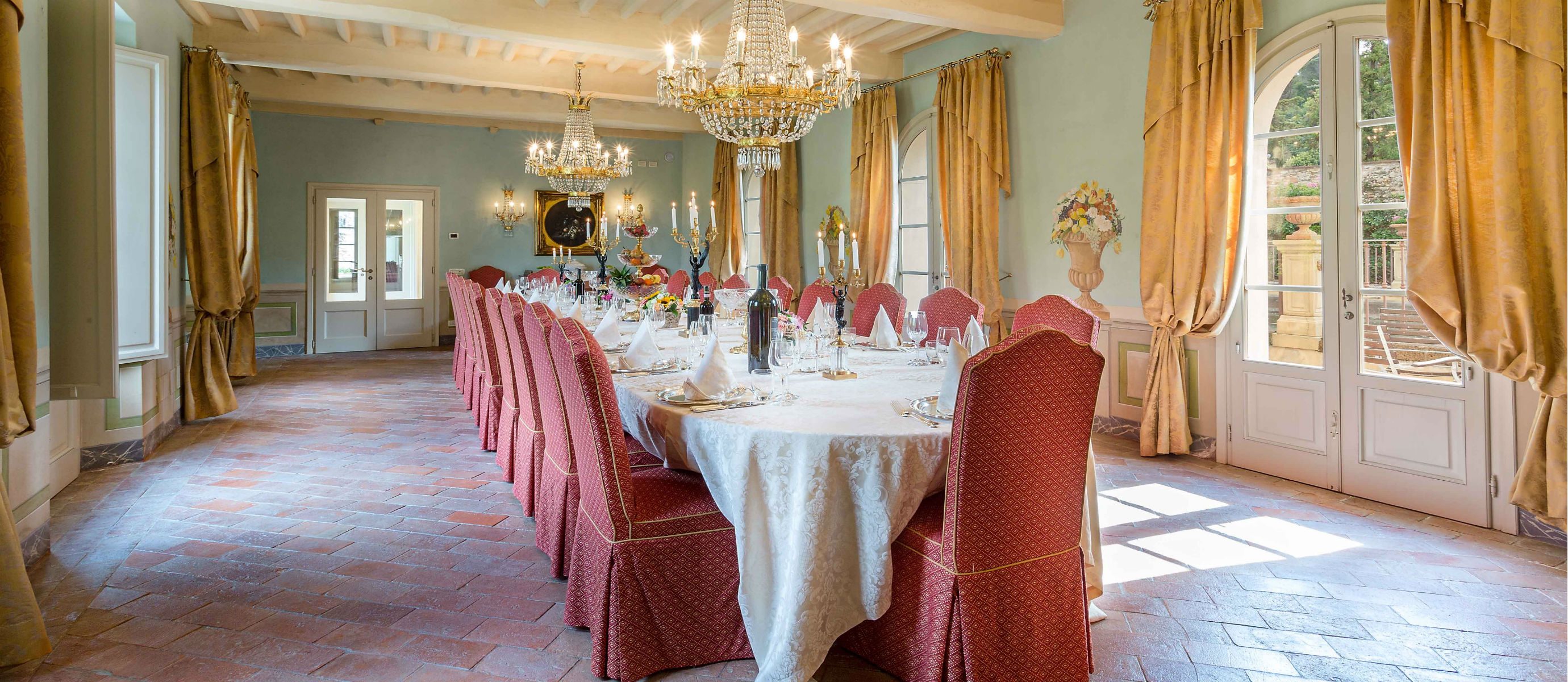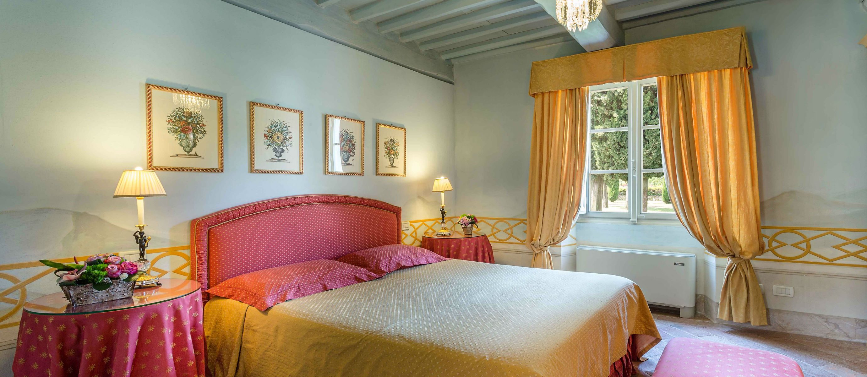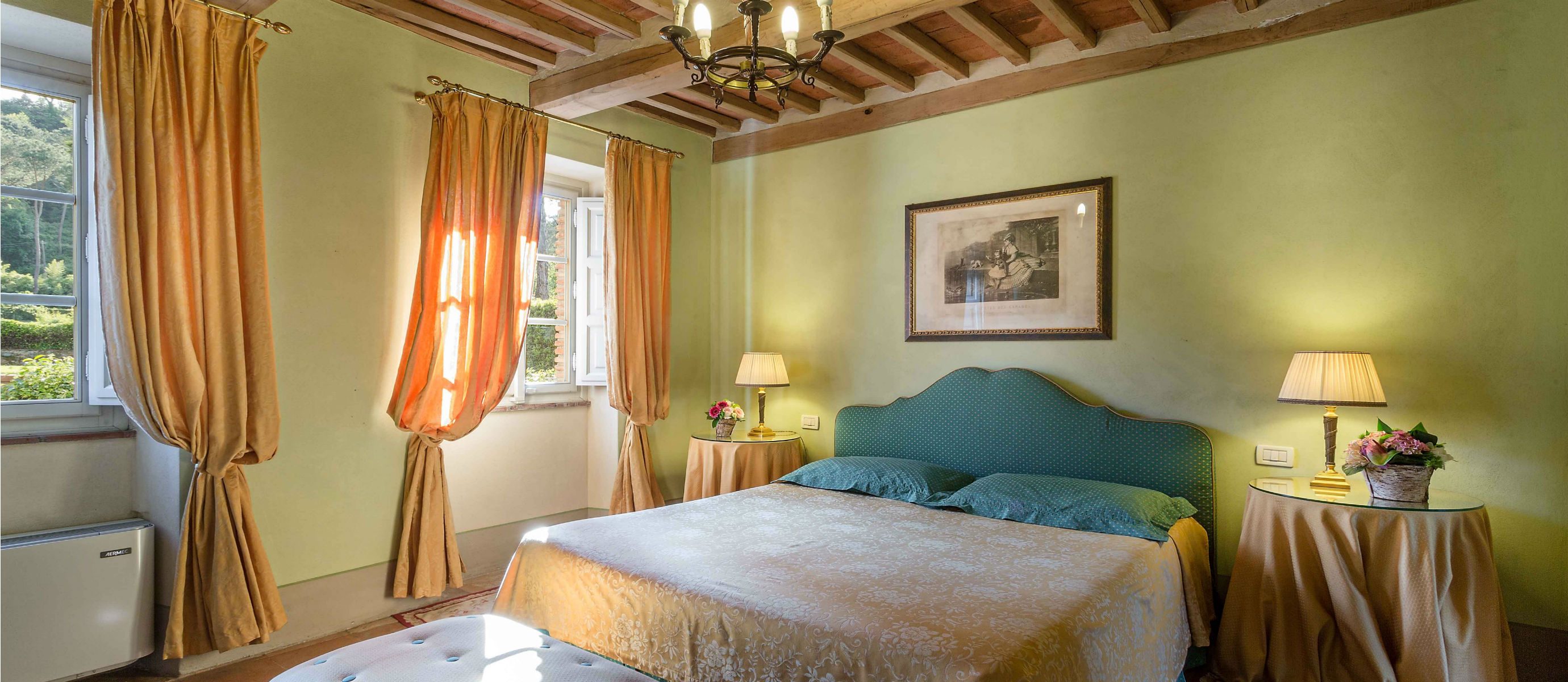 Centuries ago Count Bernardini created a haven in the hills that surround the ancient walled city of Lucca. Today Lucca Hamlet is an elegant and exclusive Tuscan retreat immersed in a splendid parkland of ornamental ponds and antique fountains, time-forgotten courtyards, and lemon-scented Italian gardens. The 12 individually styled bedrooms, accommodating up to 24 guests, are a reflection of gracious living blended discreetly with the typical Tuscan hamlet style of wood-beamed ceilings, terracotta floors, and warm, welcoming colours. The reception rooms include a wine library with a private collection of Tuscan wines, a card, and billiard room, a domed music room with a log fireplace, a grand banquet room, a large Tuscan kitchen, several comfortable lounges as well as a workout room. With original features and picturesque views over hills and olive groves, Lucca Hamlet is a home of beauty, tranquility, and charm… a perfect place for the gathering of family and friends where days are timeless and memorable.