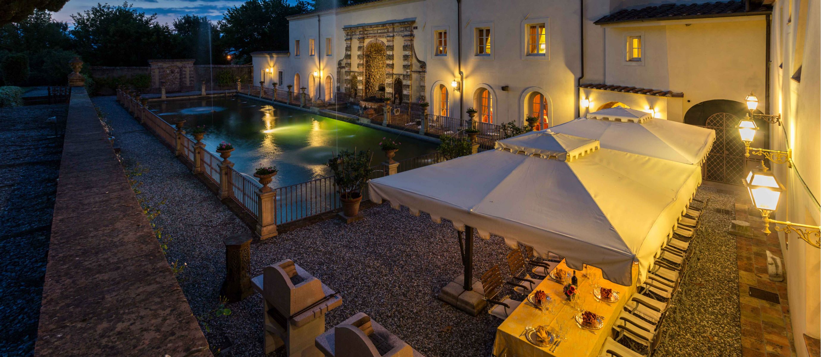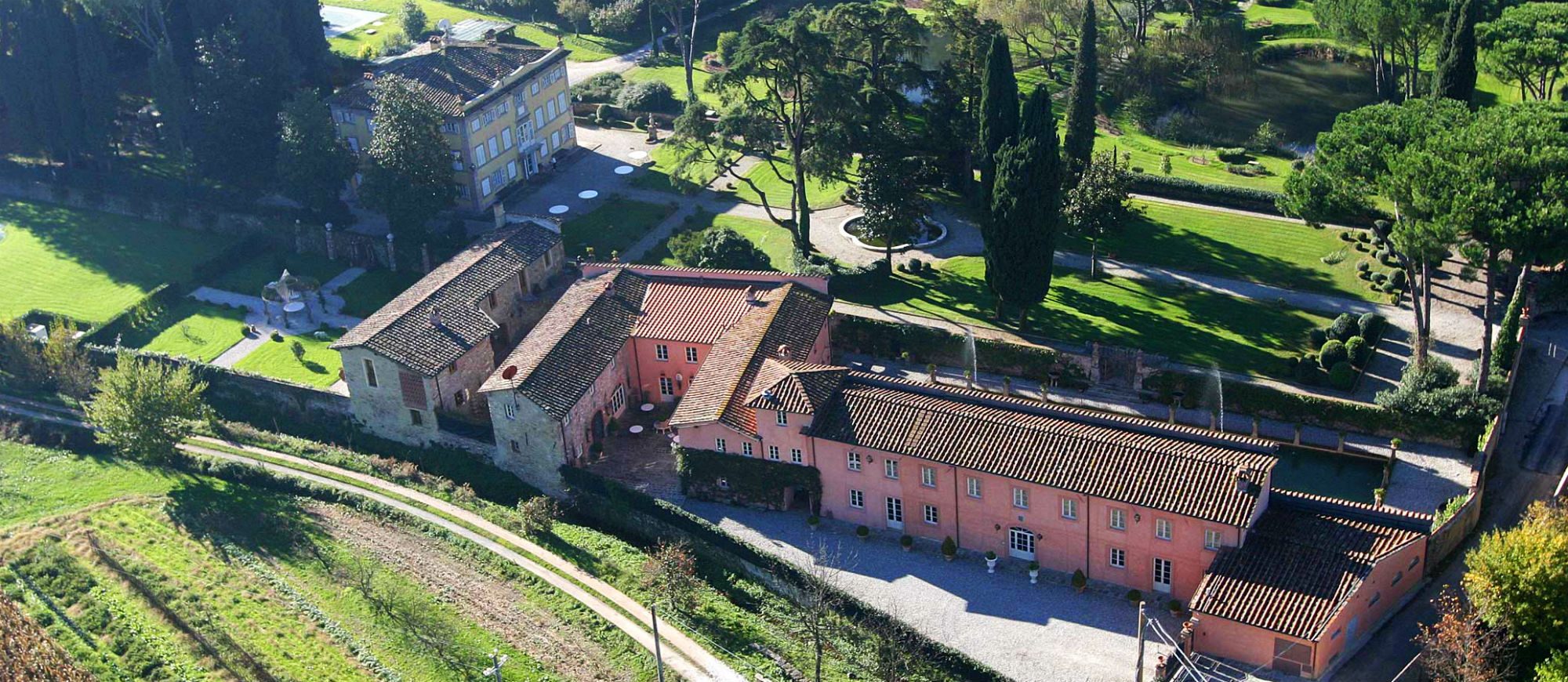 An exclusive and elegant Tuscan retreat in a splendid parkland of ornamental ponds and antique fountains, time-forgotten courtyards and lemon scented gardens.