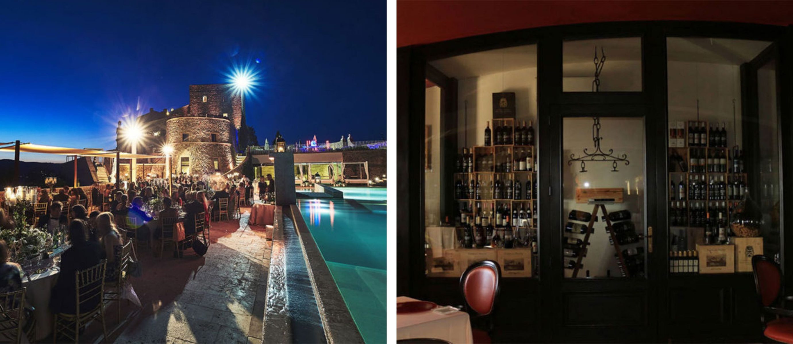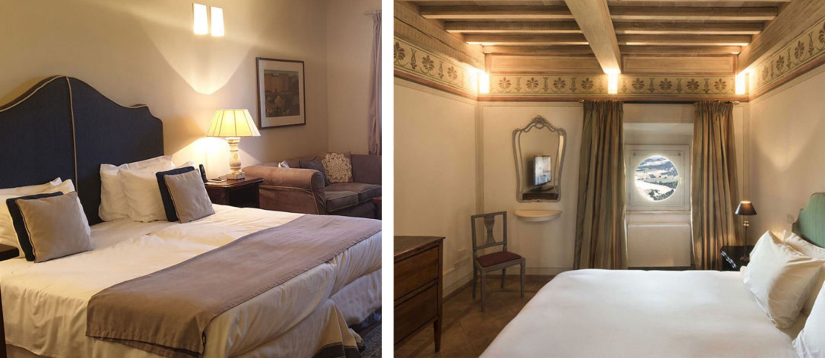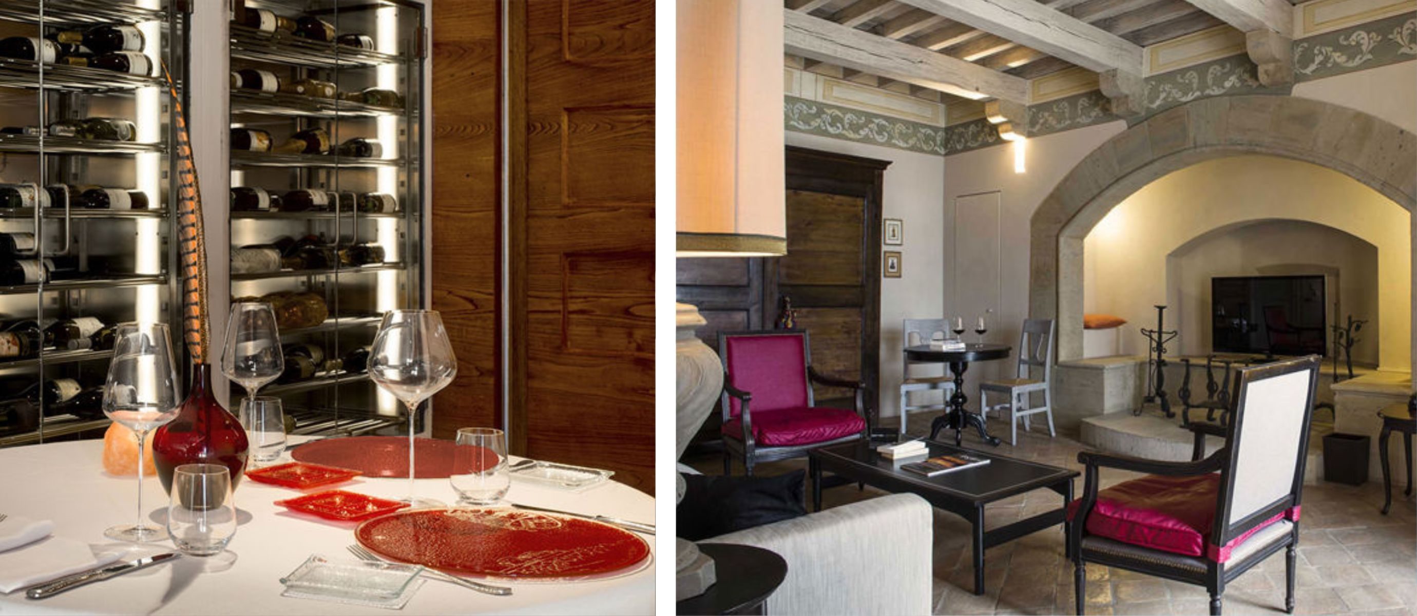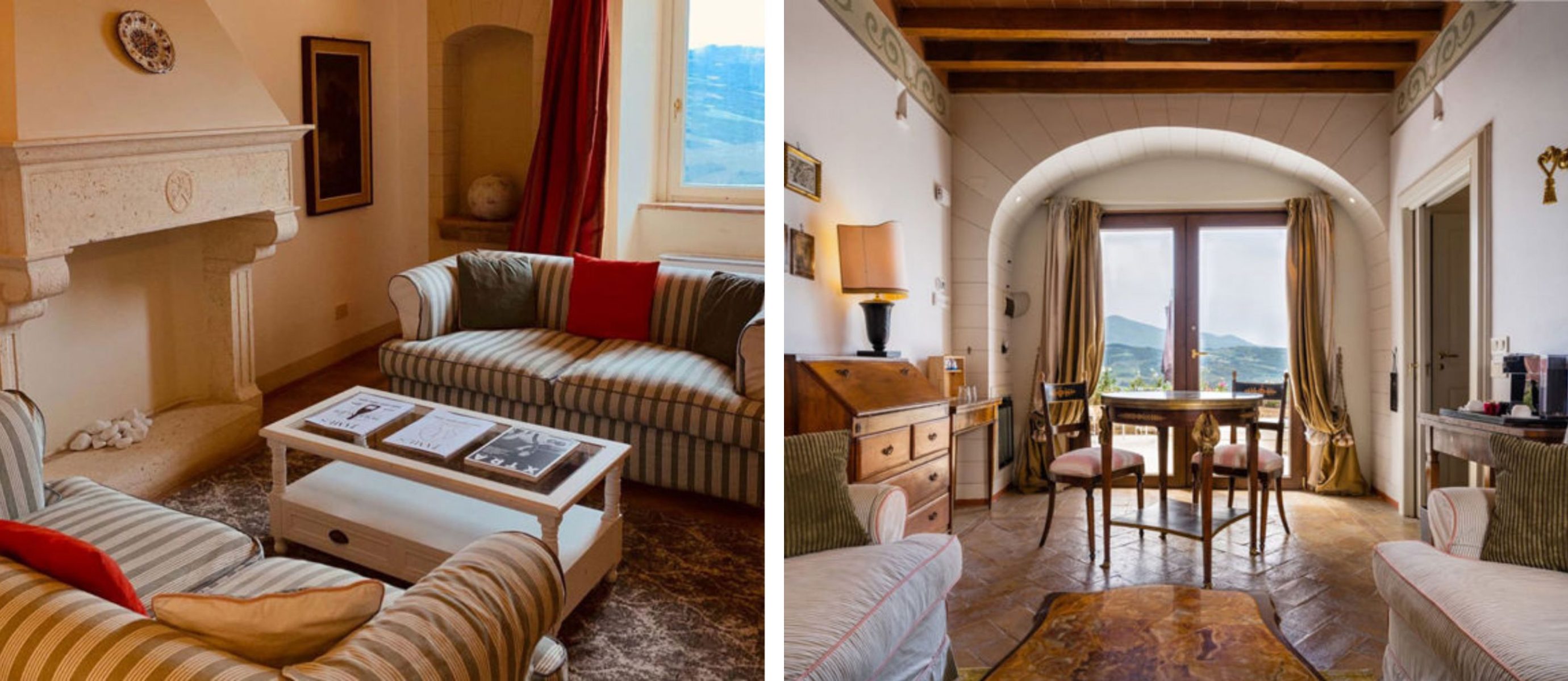 All rooms have breathtaking views over the Val d’Orcia and the Brunello of Montalcino’s vineyards and have been designed with two different concepts: Monumental Rooms (with the original Castle Tuscan style furnishing) and UNESCO View Rooms in a contemporary style, all with hot natural thermal water in their bathtubs and a private patio with a sunset breathtaking view.