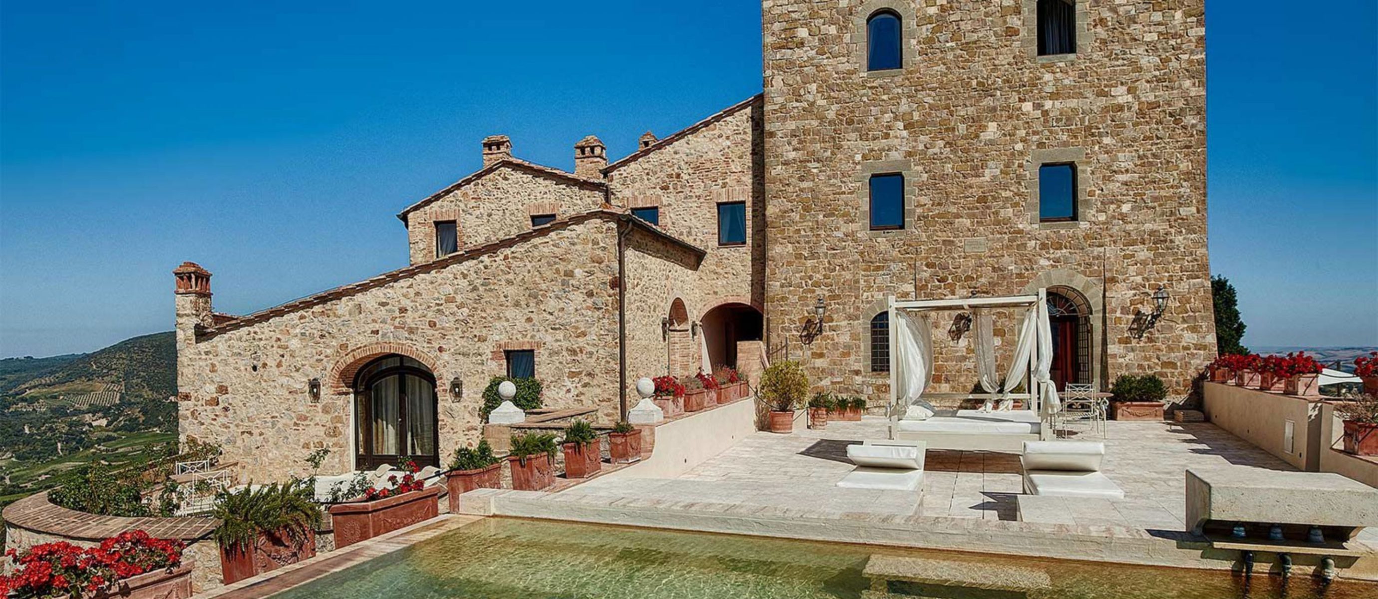 Steeped in history this castle dates back to the XI century. Located 8 km from Montalcino on a hilltop overlooking the entire Val d’Orcia, in Tuscany.