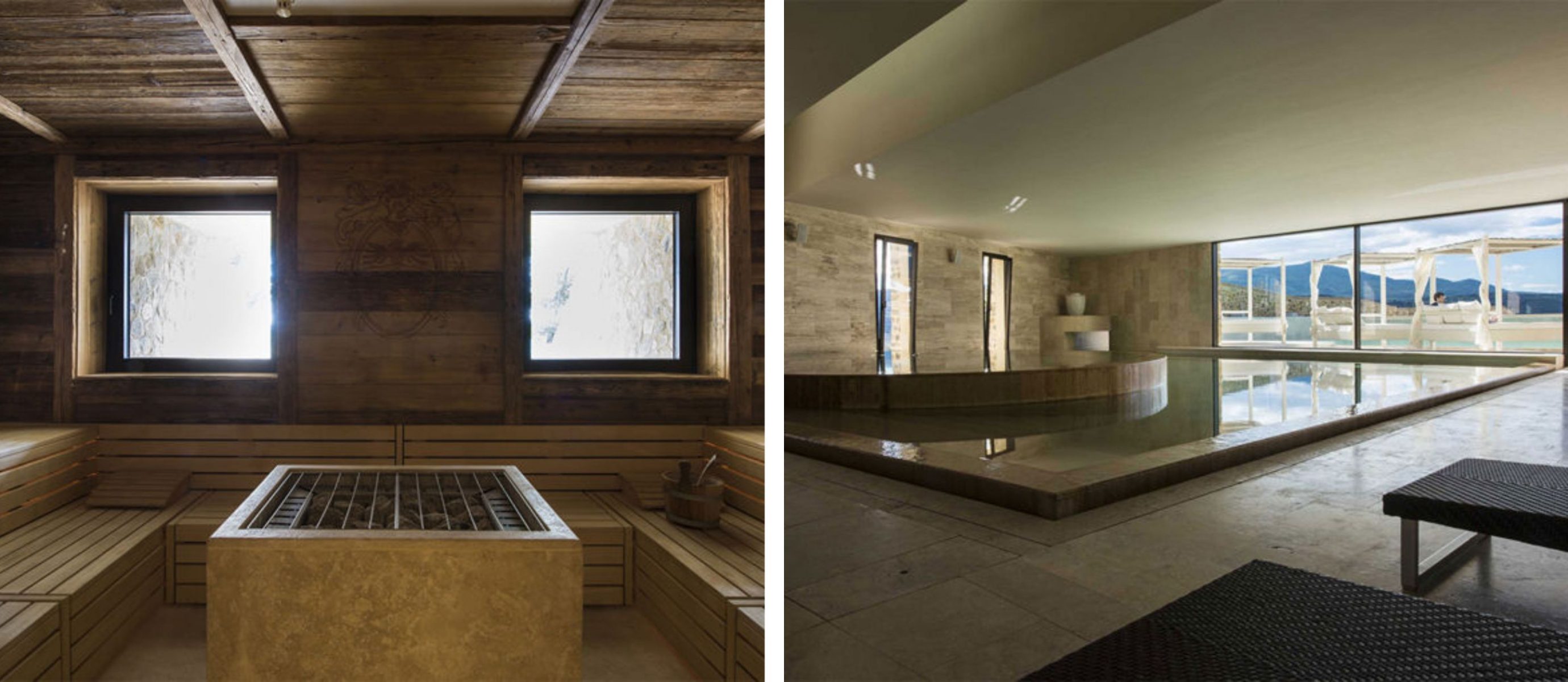 There is also a wet area with two Turkish baths, a panoramic sauna, an ice fountain and emotional showers that stimulate all senses through aromatherapy and chromotherapy.