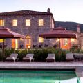 The two-story stone villa features a home theatre as well as a pool, pool house, tennis court and vast gardens.