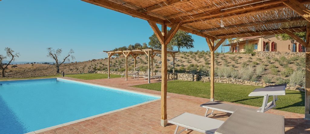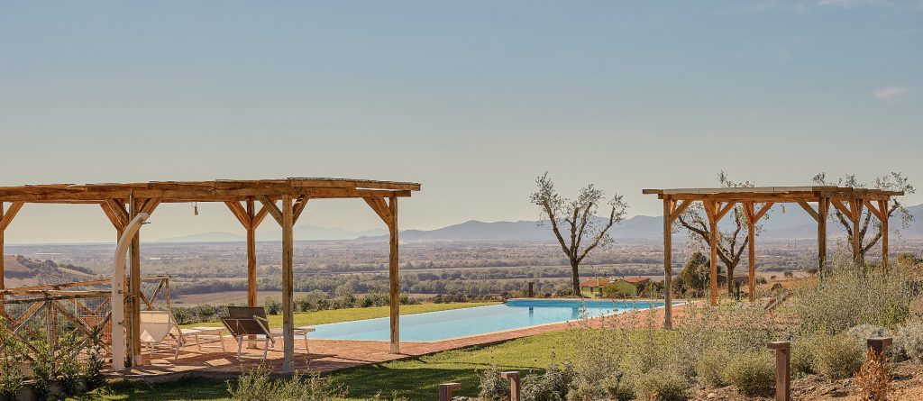 The property is located on a hill in the heart of Maremma, South Tuscany – only 25 km away from the coast. Close to renowned wineries, medieval villages, sandy beaches and local restaurants.