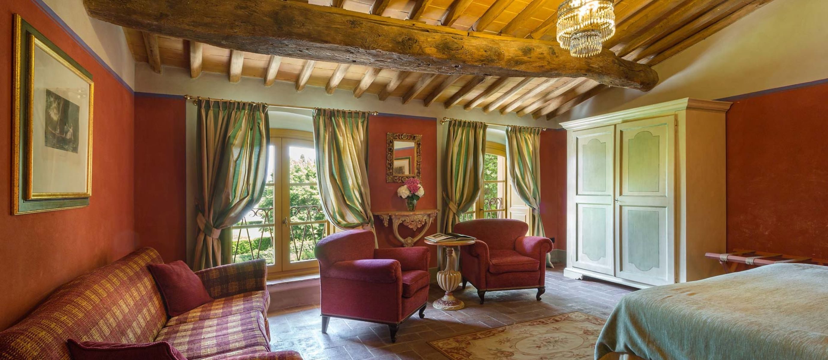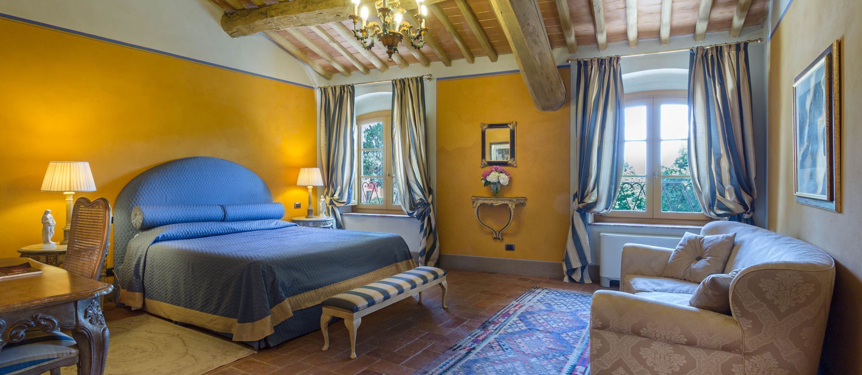 A jewel of a Tuscan farmhouse, dating back to 17th Century, set on a stunning estate of hill-terraced olive groves and overlooking a small lake.