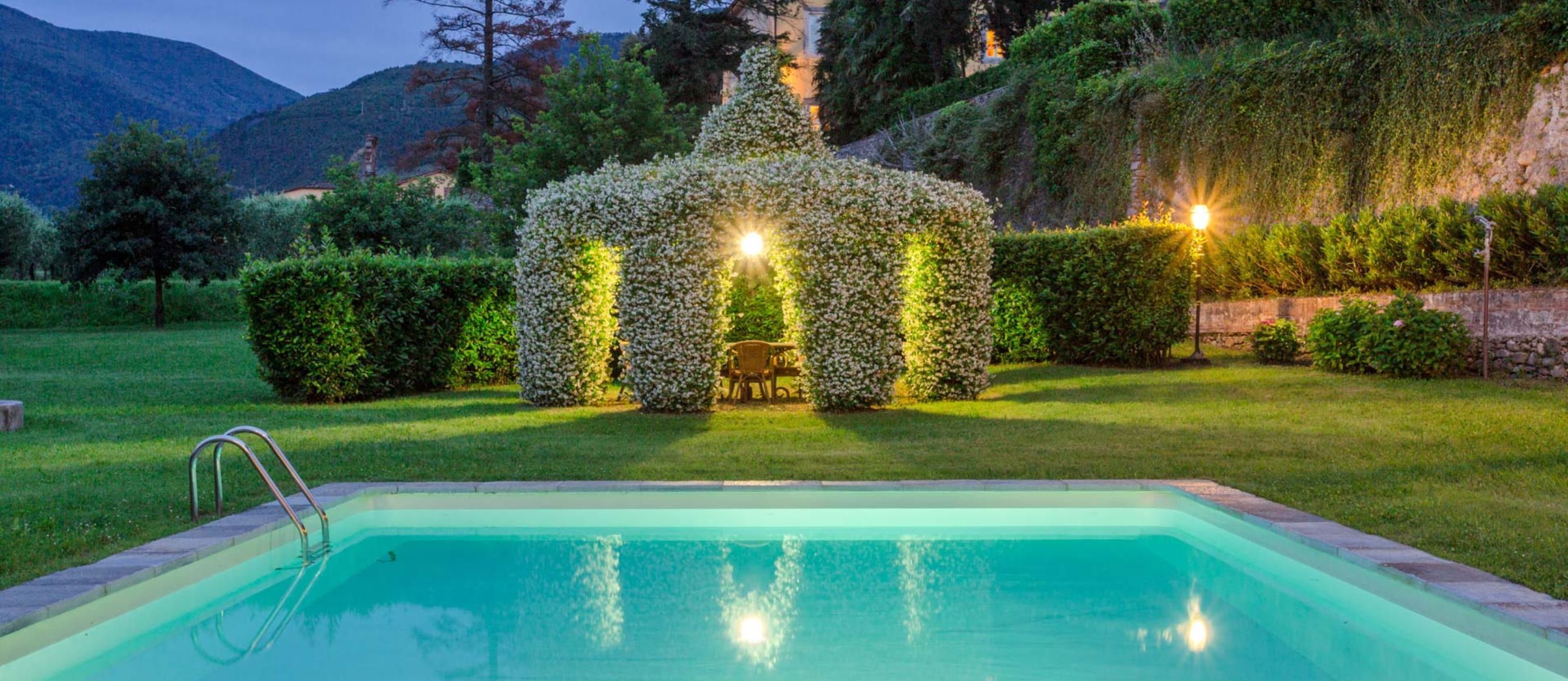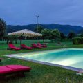 Tuscan Gem is a jewel of a Tuscan farmhouse set on a stunning estate of hill-terraced olive groves, overlooking a small lake with a little tree-shaded island reached by a wooden bridge. It is an elegant home with 6 luxuriously appointed guestrooms, each with magnificent en-suite bath/shower rooms, accommodating up to 12 guests. The ground floor is spacious and sunny offering a salon with comfortable sofas, a guest study, a grand domed dining room, and a Tuscan kitchen. The jasmine-covered gazebo surrounded by lawned gardens sets the perfect backdrop to the flood-lit swimming pool. Tuscan Gem is a blissful retreat to discover and enjoy the magical beauty of La Dolce Vita.