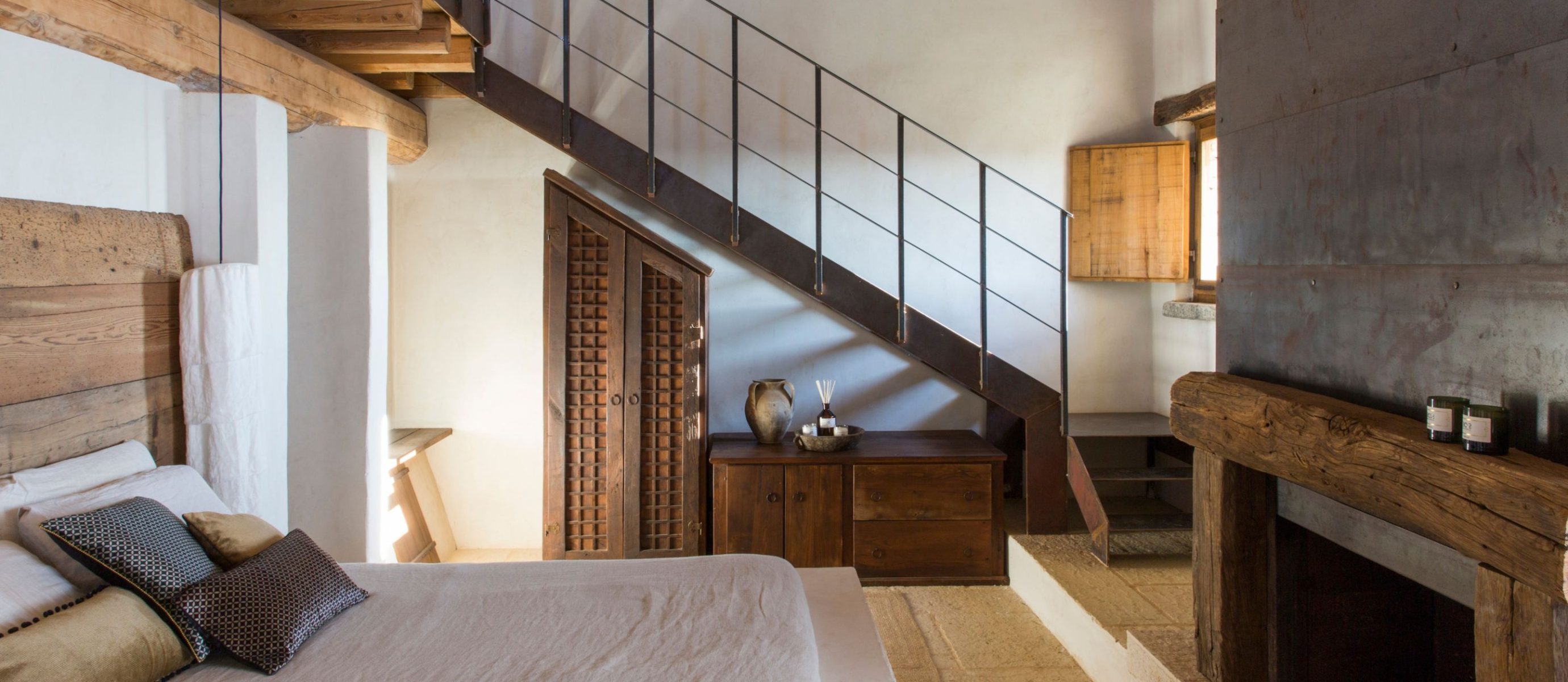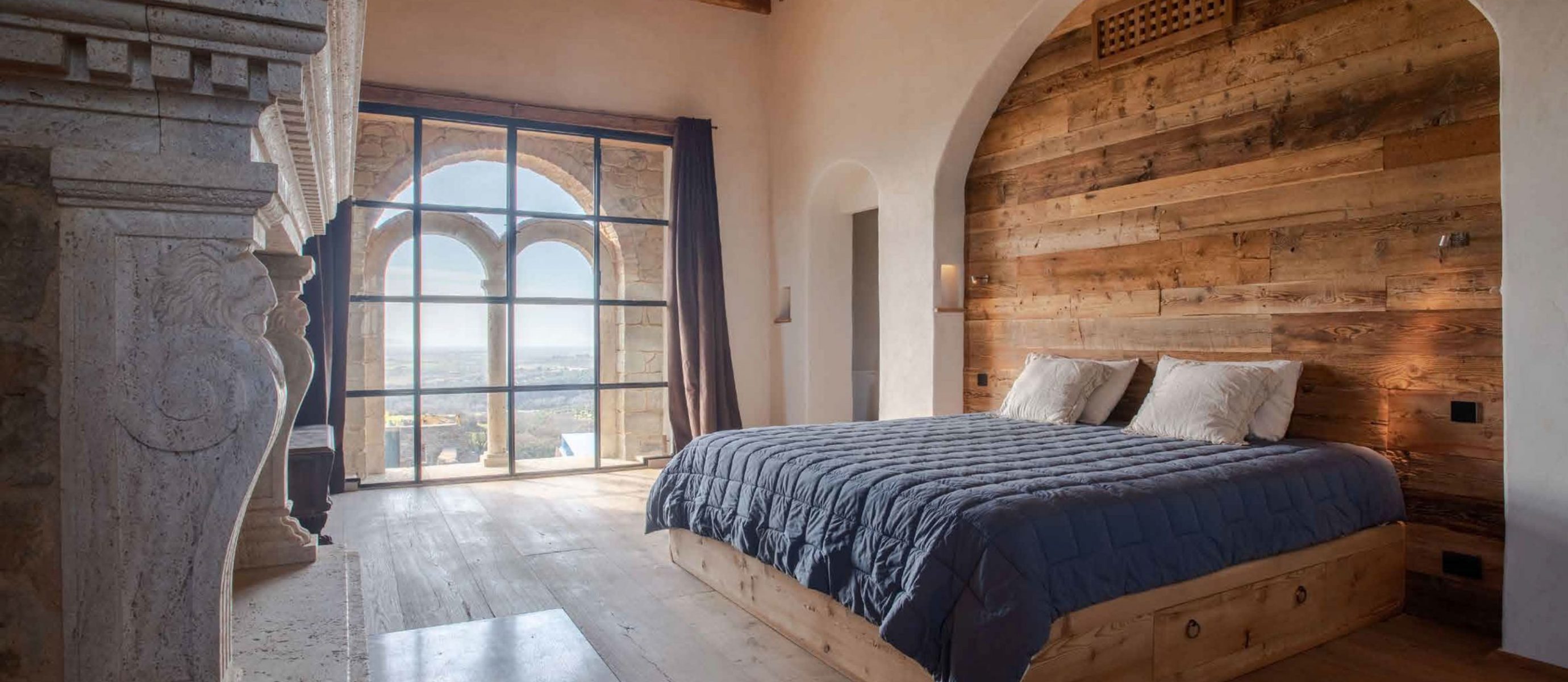 Traditional large stone and brick fireplace, private balcony and roof deck terrace with breathtaking views, king-size mattress fitted with organic linen bed sheets, oversized bathroom, bathtub or shower room, high-end toiletries, scented candles and natural fragrance diffusers made in Italy.