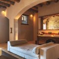 The four meters high fireplace opens into the living room: a place of pleasure, of indulgence, among sofas, rugs, books, art and windows overlooking the valley and the sea.